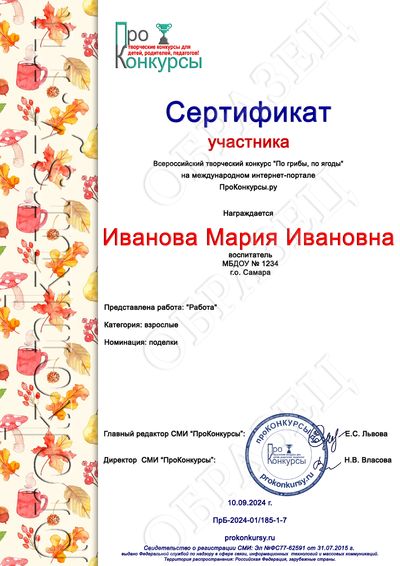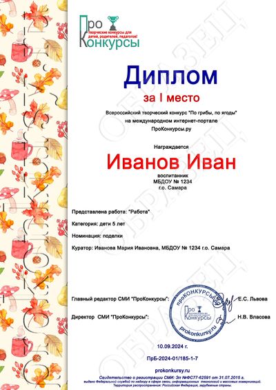 Оформление и рассылка дипломов и сертификатов на электронные адреса участников производятся на третий рабочий день после добавления Вами работы на сайт при условии получения от Вас оплаты.