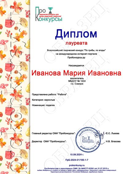 Принимаются любые творческие работы: рисунки, поделки, фотографии на тему грибов и ягод. Работы, содержащие фото людей (лица), НЕ принимаются! В номинации "Фотографии" не дети-участники фотографируются, а дети-участники фотографируют сами (и не людей). В данную номинацию принимаются творческие фотоработы. Если люди попали в кадр, их лица не должны быть различимы (замажьте, закрасьте, скройте, обрежьте фото и т.д.)