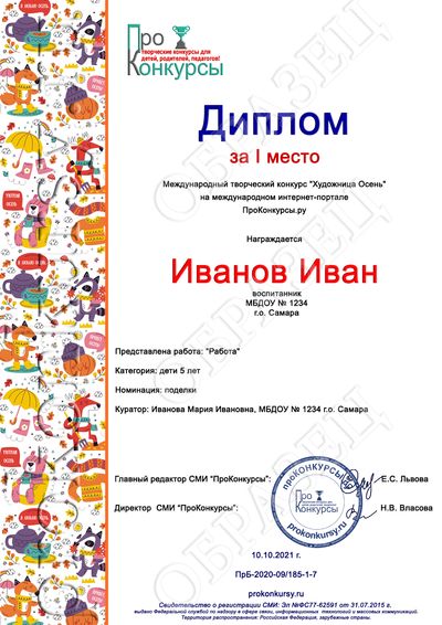 - 80 рублей - Свидетельство о публикации. Свидетельство выдается автору работы, т.е. если автор работы - ребенок, то документ будет выдан на имя ребенка. Если автор работы - взрослый, документ оформляется на имя этого взрослого.