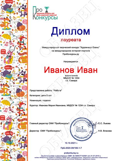 Оформление и рассылка дипломов и сертификатов на электронные адреса участников производятся на третий рабочий день после добавления Вами работы на сайт при условии получения от Вас оплаты.