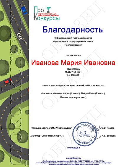 - Благодарственные письма для педагогов, заявивших на конкурс 20 детских работ и более;