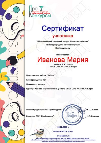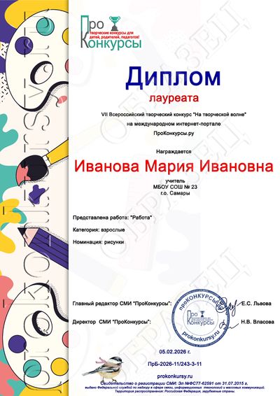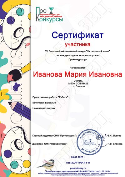 Оформление и рассылка дипломов и сертификатов на электронные адреса участников производятся на третий рабочий день после добавления Вами работы на сайт при условии получения от Вас оплаты.