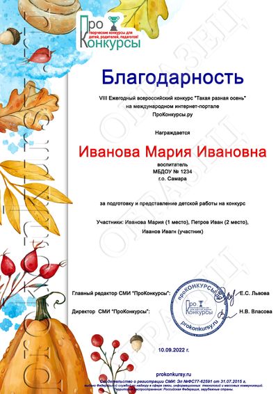 - Благодарственные письма для педагогов, заявивших на конкурс 20 детских работ и более;