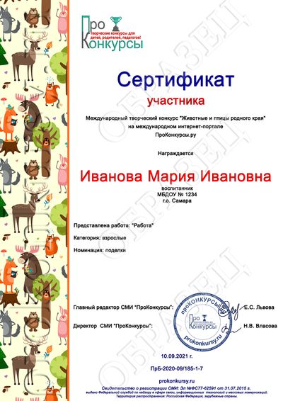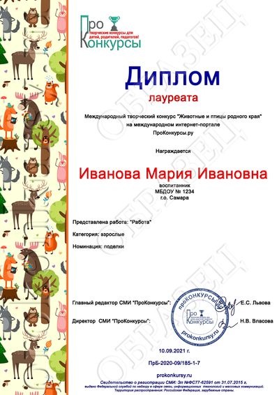 Принимаются любые творческие работы: рисунки, поделки, фотографии на тему животных и птиц. Работы, содержащие фото людей (лица), НЕ принимаются! В номинации "Фотографии" не дети-участники фотографируются, а дети-участники фотографируют сами (и не людей). В данную номинацию принимаются творческие фотоработы. Если люди попали в кадр, их лица не должны быть различимы (замажьте, закрасьте, скройте, обрежьте фото и т.д.)
