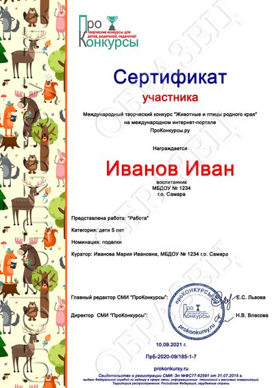 Оформление и рассылка дипломов и сертификатов на электронные адреса участников производятся на третий рабочий день после добавления Вами работы на сайт при условии получения от Вас оплаты.