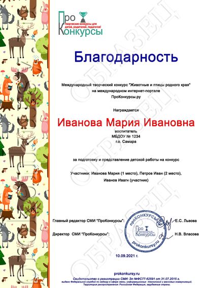 - Благодарственные письма для педагогов, заявивших на конкурс 20 детских работ и более;
