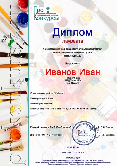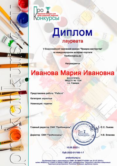Оформление и рассылка дипломов и сертификатов на электронные адреса участников производятся на третий рабочий день после добавления Вами работы на сайт при условии получения от Вас оплаты.