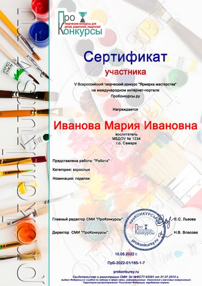 - 80 рублей - Свидетельство о публикации. Свидетельство выдается автору работы, т.е. если автор работы - ребенок, то документ будет выдан на имя ребенка. Если автор работы - взрослый, документ оформляется на имя этого взрослого.