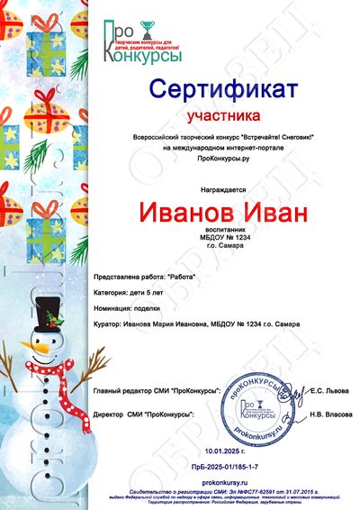 - 100 рублей - Свидетельство о публикации. Свидетельство выдается автору работы, т.е. если автор работы - ребенок, то документ будет выдан на имя ребенка. Если автор работы - взрослый, документ оформляется на имя этого взрослого.