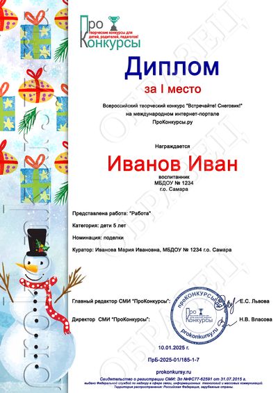 Оформление и рассылка дипломов и сертификатов на электронные адреса участников производятся на третий рабочий день после добавления Вами работы на сайт при условии получения от Вас оплаты.