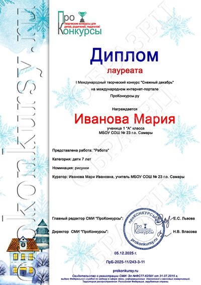 Приём работ: с 01 по 31 декабря 2025 года;