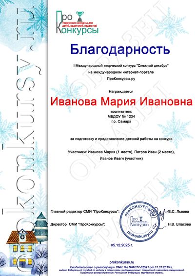 - Благодарственные письма для педагогов, заявивших на конкурс 20 детских работ и более;