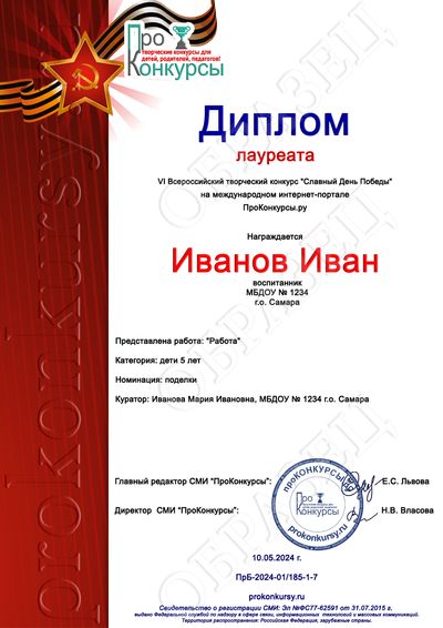 - Дипломы победителей (1, 2, 3 места);