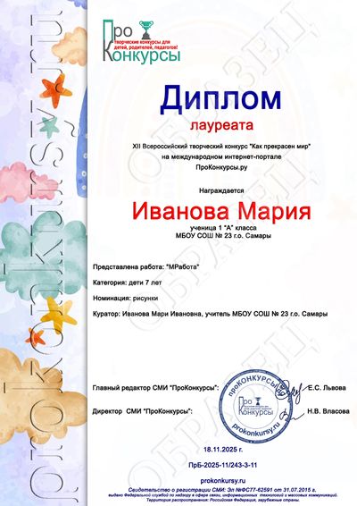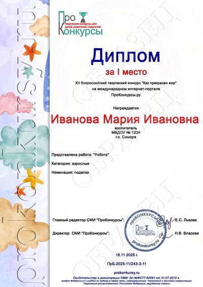 - Дипломы победителей (1, 2, 3 места);