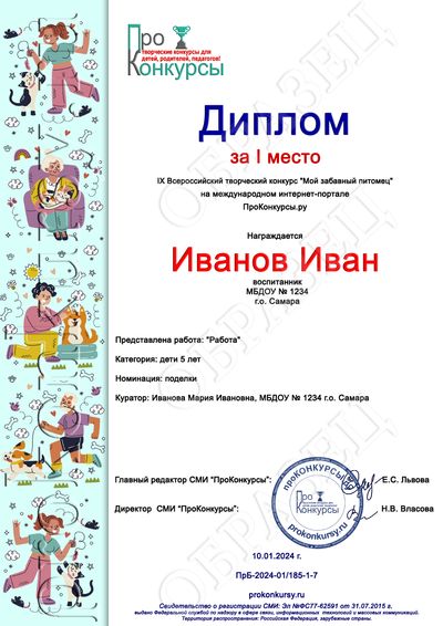 - Дипломы победителей (1, 2, 3 места);