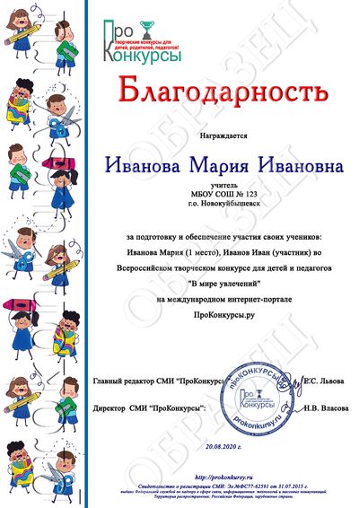 - Благодарственные письма для педагогов, заявивших на конкурс 20 детских работ и более;