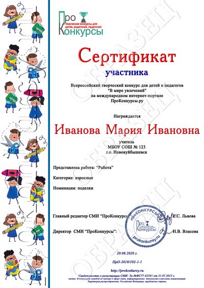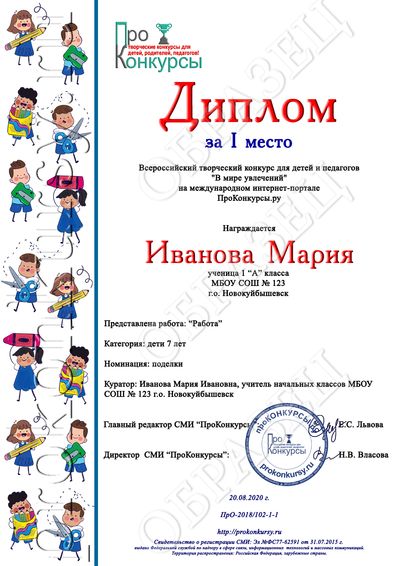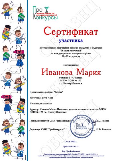 - 100 рублей - Свидетельство о публикации. Свидетельство выдается автору работы, т.е. если автор работы - ребенок, то документ будет выдан на имя ребенка. Если автор работы - взрослый, документ оформляется на имя этого взрослого.