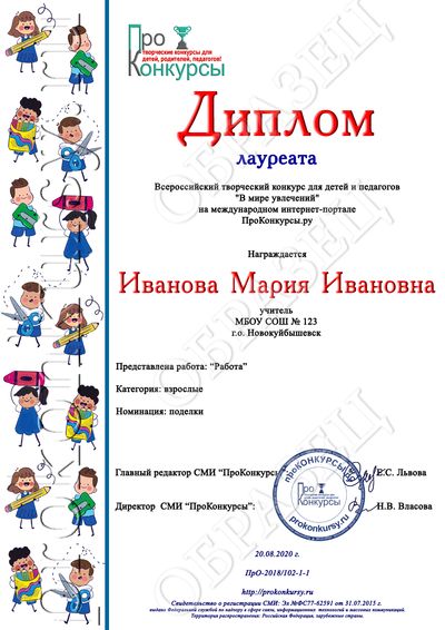 Оформление и рассылка дипломов и сертификатов на электронные адреса участников производятся на третий рабочий день после добавления Вами работы на сайт при условии получения от Вас оплаты.