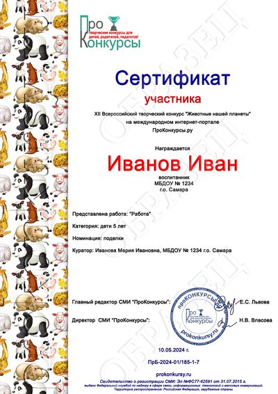 - 100 рублей - Свидетельство о публикации. Свидетельство выдается автору работы, т.е. если автор работы - ребенок, то документ будет выдан на имя ребенка. Если автор работы - взрослый, документ оформляется на имя этого взрослого.