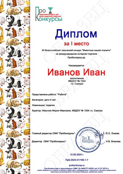 Принимаются любые творческие работы: рисунки, поделки, фотографии на тему животных. Работы, содержащие фото людей (лица), НЕ принимаются! В номинации "Фотографии" не дети-участники фотографируются, а дети-участники фотографируют сами (и не людей). В данную номинацию принимаются творческие фотоработы. Если люди попали в кадр, их лица не должны быть различимы (замажьте, закрасьте, скройте, обрежьте фото и т.д.)