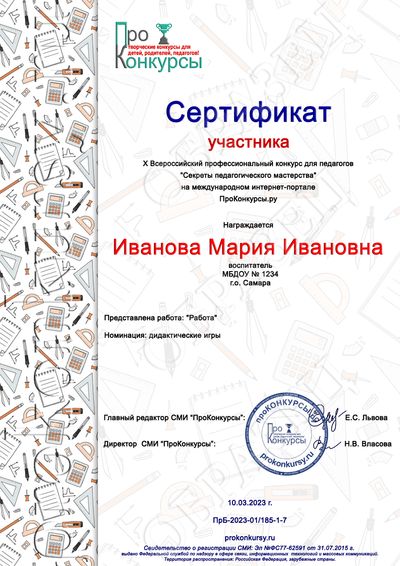 Рассылка сертификатов и дипломов на электронную почту: через 3 рабочих дня после получения заявки!