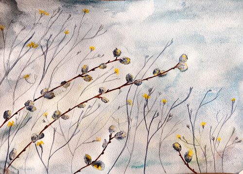 Весенние цветы вербы за окном как символ приближающегося тепла и зеленой весны