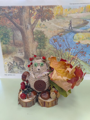 Материал:основа обтянута бичевкой и украшена плодами деревьев.