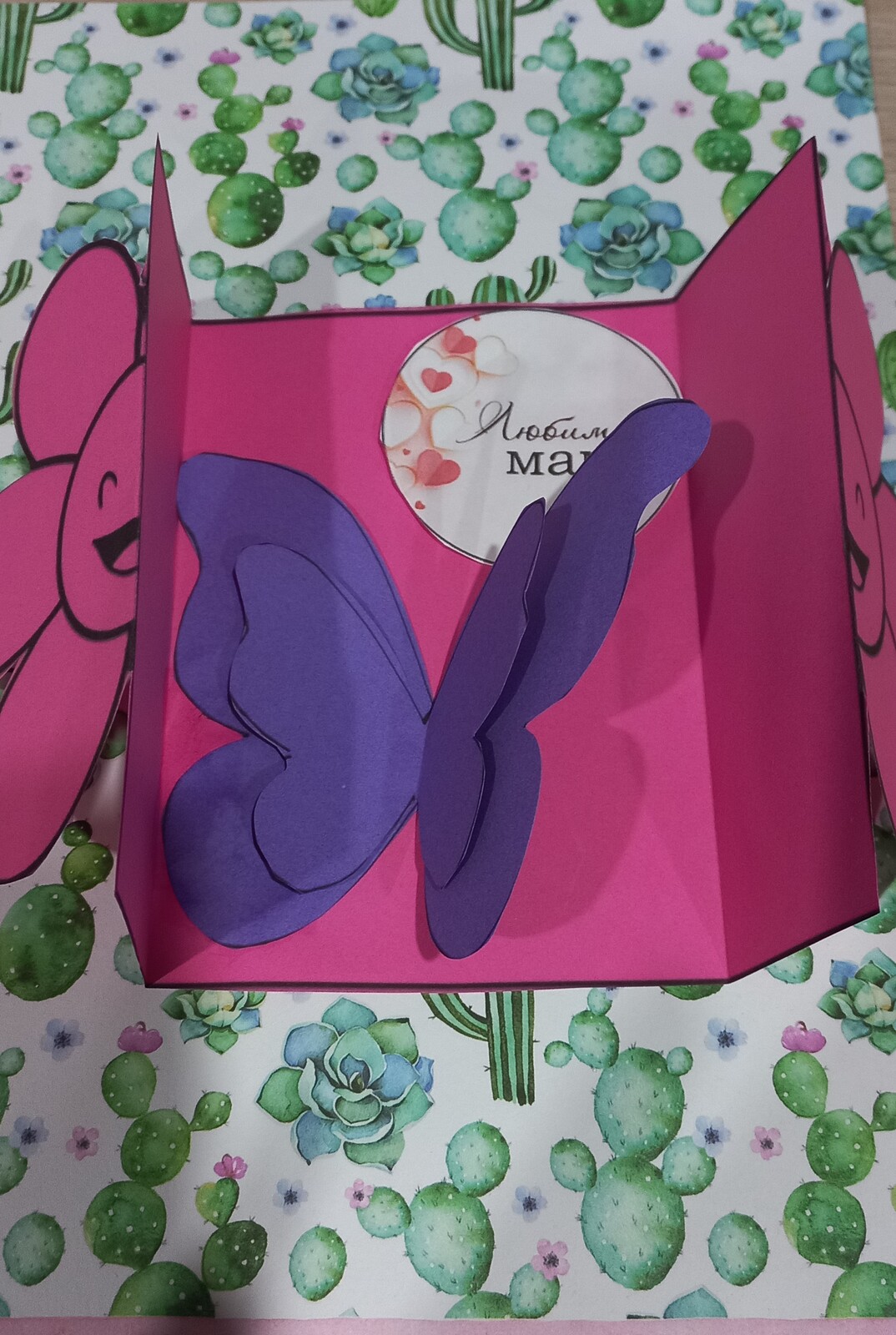 с помощью шаблона выполняем наклеивание бабочки и поздравления