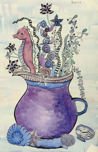 Работа выполнена акварелью и фломастером