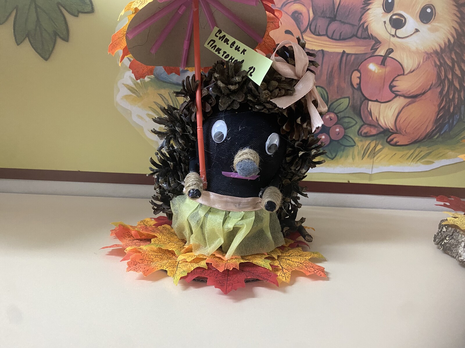 Осенний ёжик выполнен из природного материала.