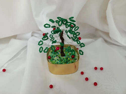 Работа выполнена в технике бисероплетения